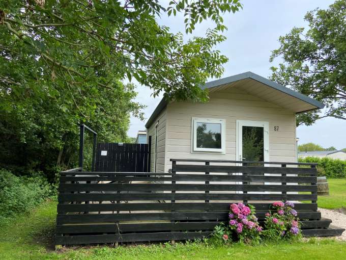 Op het park staat een luxe ingericht hotel chalet met een privé jacuzzi (incl.) in de veranda.